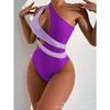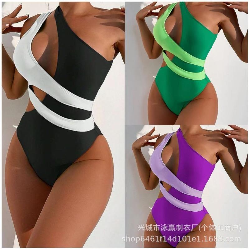 Sexy One-piece Swimsuit Onservative Color Matching Contrasting Color Single Shoulder Sloping Shoulder