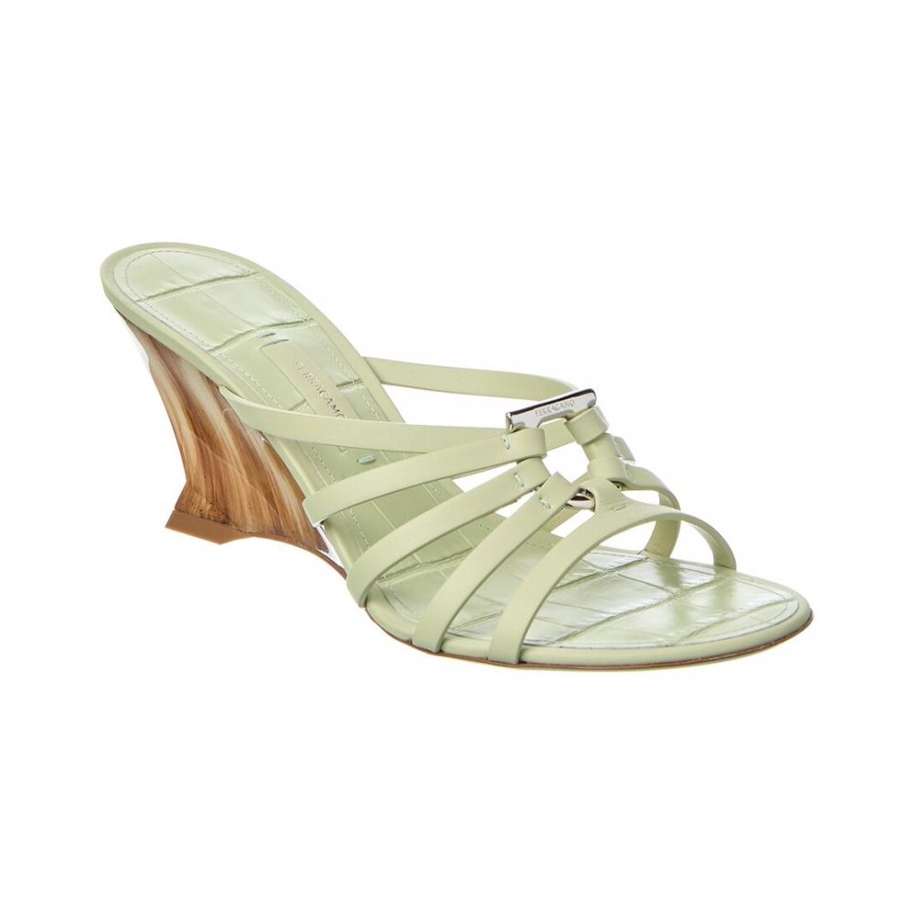 Elevate your summer style with the Ferragamo Anemone Leather Wedge Sandal by Salvatore Ferragamo. Crafted in Italy with sage leather and gold-tone hardware, these sandals feature the iconic Gancini detail for a touch of luxury. The lightly padded leather insole and smooth leather sole provide comfort and style, while the 3.5-inch heel adds a flattering lift to your look. Please note that these sandals come in standard sizing, and all measurements are approximate. Rest assured that our products are 100% genuine, sourced from trusted suppliers to ensure authenticity. Add a touch of Italian elegance to your wardrobe with these stunning wedges.