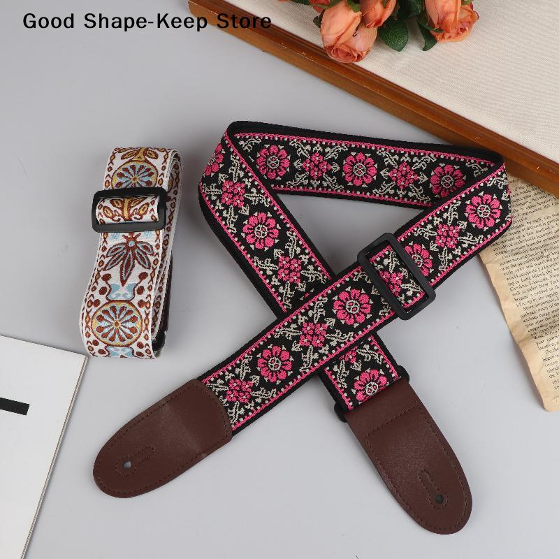 Adjustable Guitar Strap Neck Strap for Electric & Acoustic Bass Cotton Leather Embroidered Straps Musical Instrument Accessories