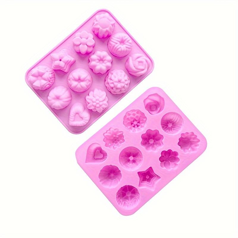 Silicone Molds for Making Soap, Lotion Bars, and Bath Bombs, Featuring Cavities In Various Shapes.