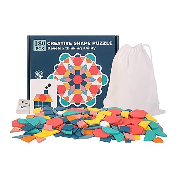The set includes 180 geometric wooden blocks in various shapes, ranging from basic triangles and squares to more challenging forms, allowing for progressive learning. Children can follow the included idea cards for guidance or unleash their imagination to create unique designs. This open-ended play aligns with Montessori philosophy, having no single correct answer, which encourages exploration, trial-and-error, and builds resilience and self-confidence.