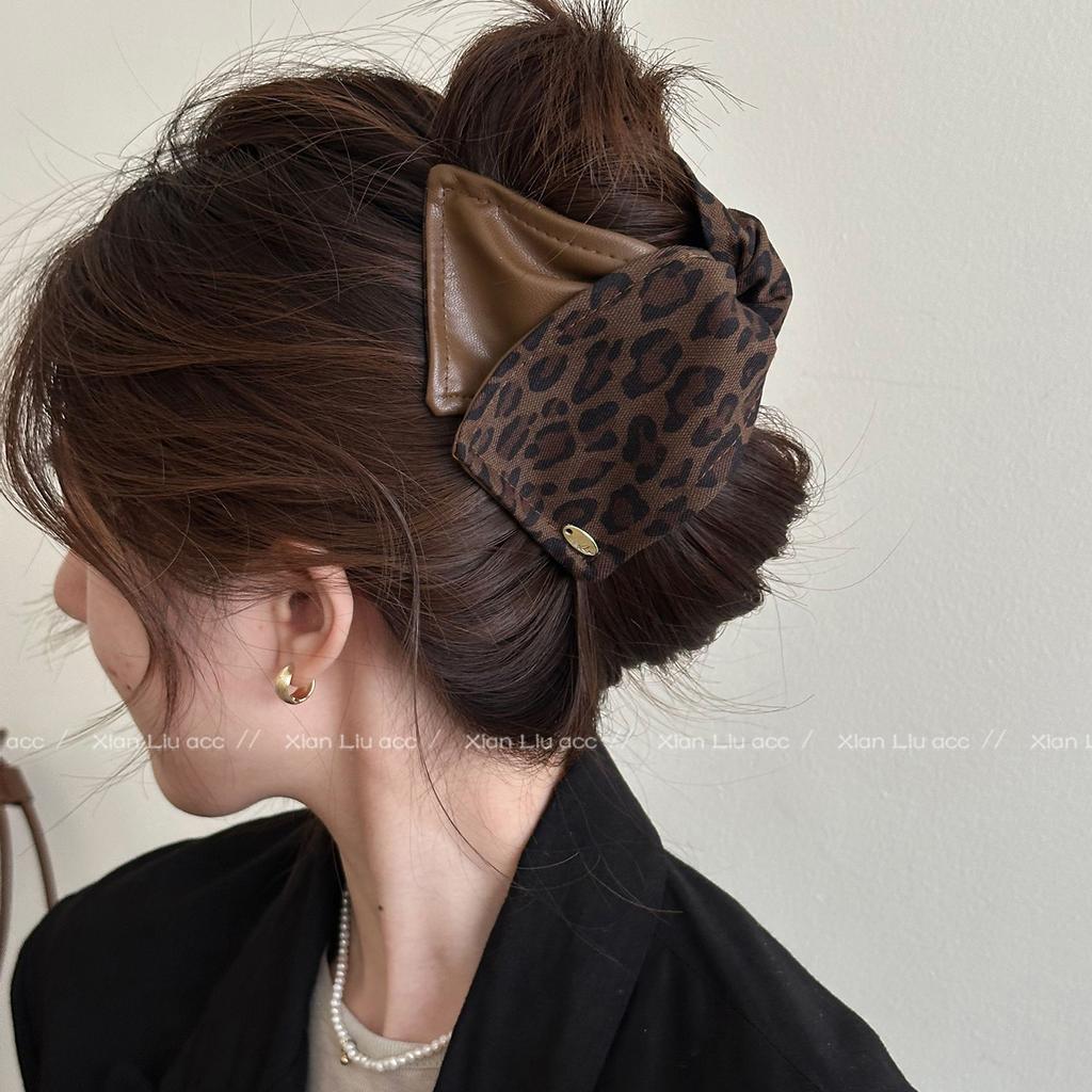 Volume Shark Clip Back Head Hairpin Retro Korean New High-end Hair Leopard Print Triangle Grab Clip Women's