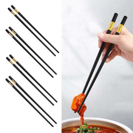 10 Pairs Plastic Chopsticks Black Gold Non-Slip Grip Micro-Tip Design Chopsticks Ergonomic Cylindrical Sushi Sticks for Chinese Japanese Food Elegant