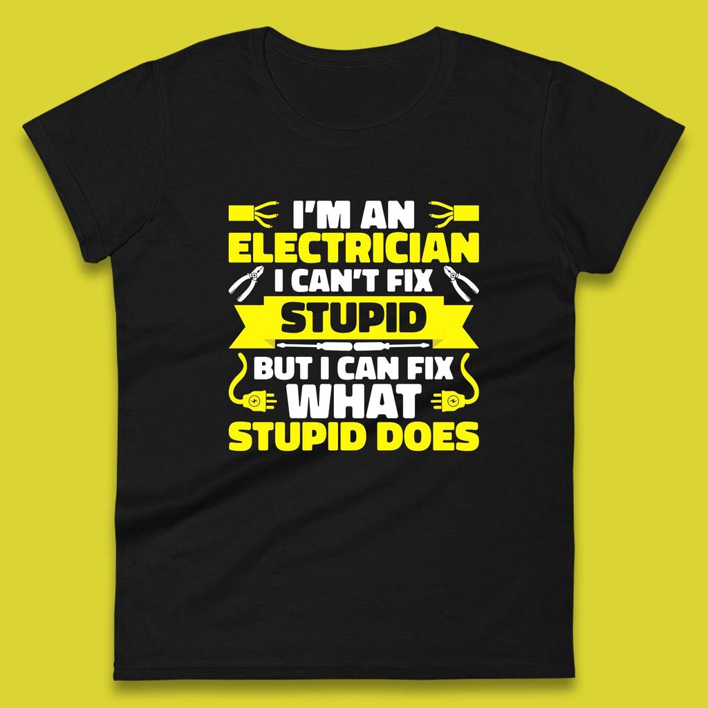 I'm An Electrician I Can't Fix Stupid But I Can Fix What Stupid Does Funny Electrician Novelty Gift Womens Tee T Shirt Mens Tops Unisex Top