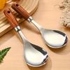 [Stainless Steel | Wooden] 2pcs Stainless Steel Wooden Handle Soup Spoon Set - Non-Stick Kitchen Utensils for Cooking, Dining