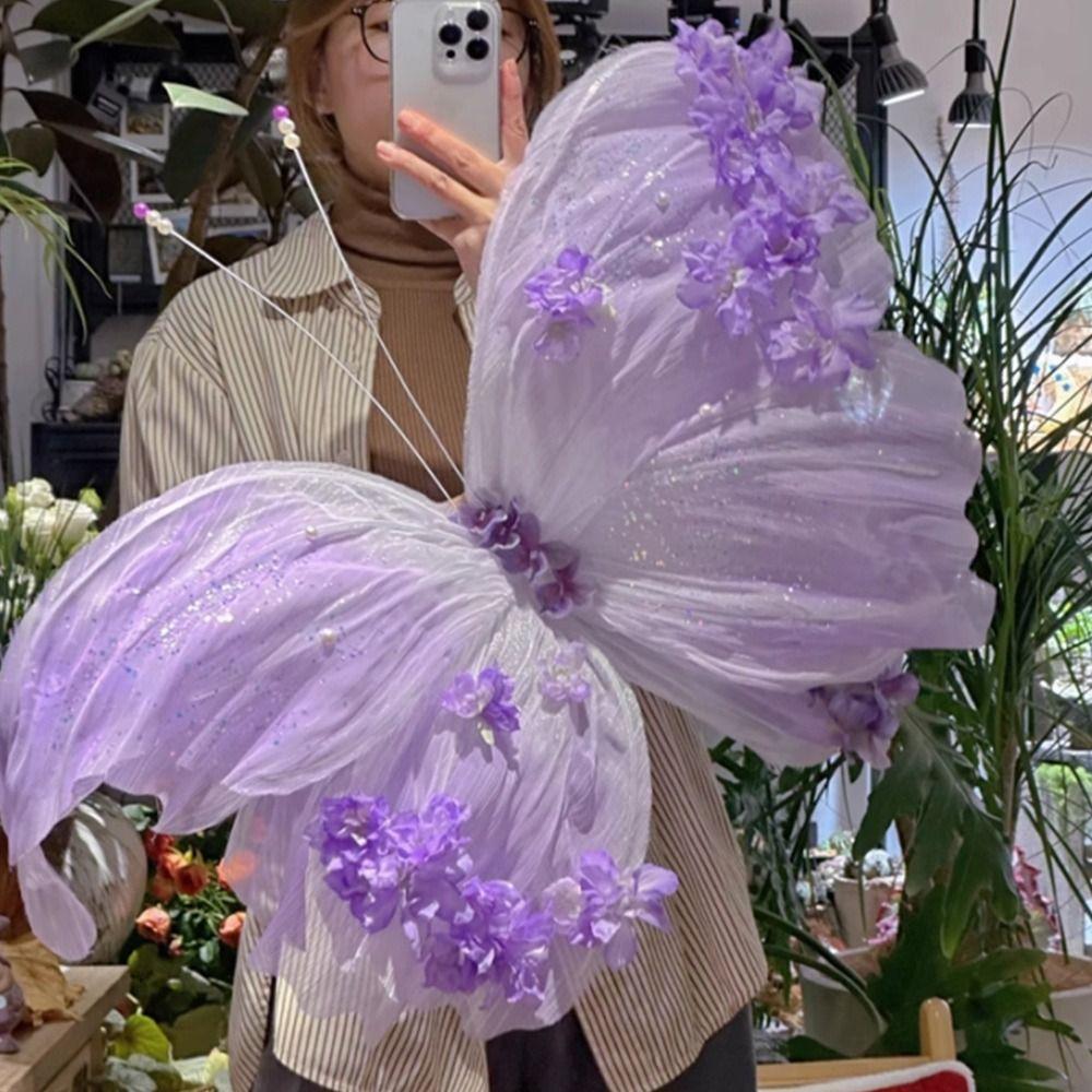 NEW 3D Simulated Flowers 40CM Colorful Veil Butterfly Large-scale Giant Layout Background Decoration Road
