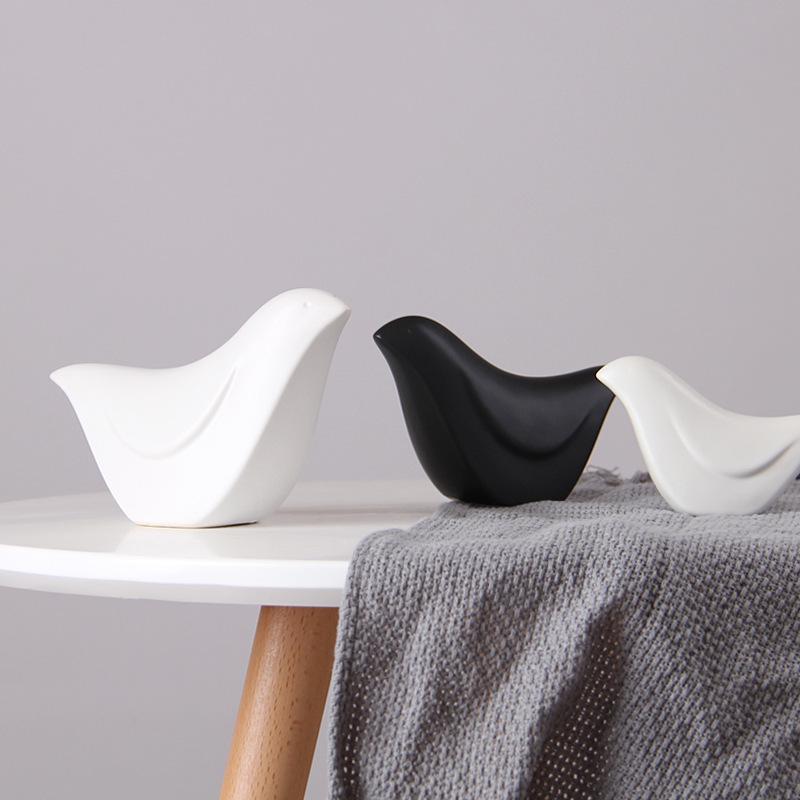 Nordic Creative Ceramic Bird Statues Black and White Bird Miniatures Soft Decoration Small Ornament Home Decor Room Sculptures