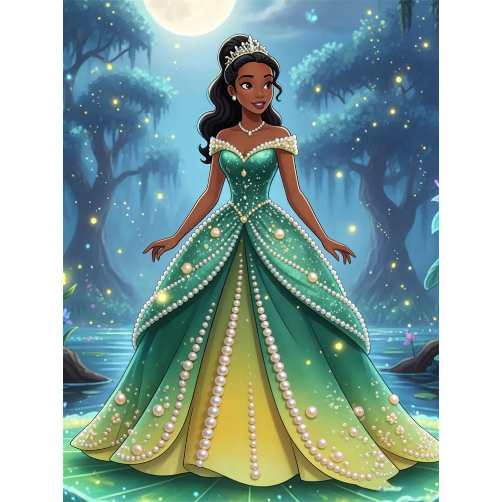 Disney Pearl Painting Princess Tiana Green Gold Gradient Skirt Creative 5D Exquisite Landscape Sparkling Craft Home Wall Decor DIY Handmade Gift