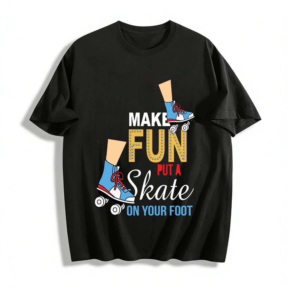 Retro Roller Skate Fun Print Casual T-Shirt Put Joy On Your Feet Pure Cotton T-shirt