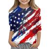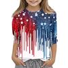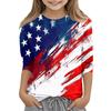 Children's 3/4 Sleeve Tops Casual Print T Shirt Round Neck Pullover Blouse