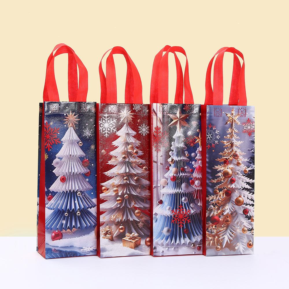 StoBag Christmas Gift Bags with Tree Prints Non Woven Tote for Holiday Party Wine Packaging Festive Reusable Bags 12pcs Bulk