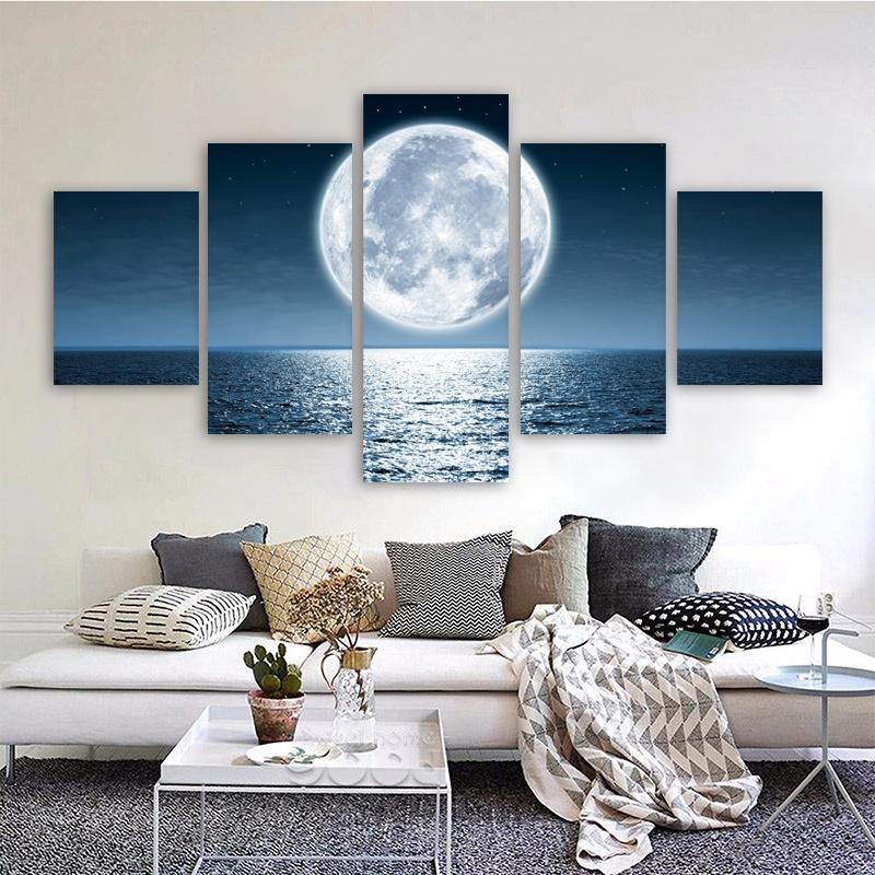 5 Panels Moon Sea Posters Canvas Painting Landscape Pictures Night Views Wall Art For Living Room Modern Home Decor No Frame
