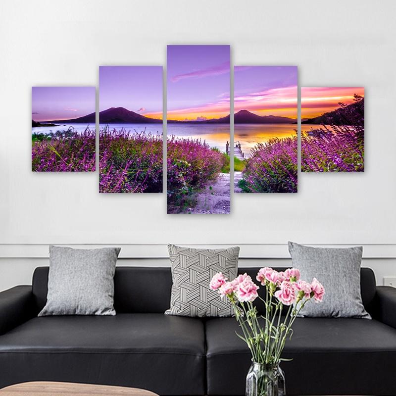 5 Panels Nature Landscape Posters Canvas Painting Mountain Pictures Flowers Wall Art For Living Room Modern Home Decor No Frame
