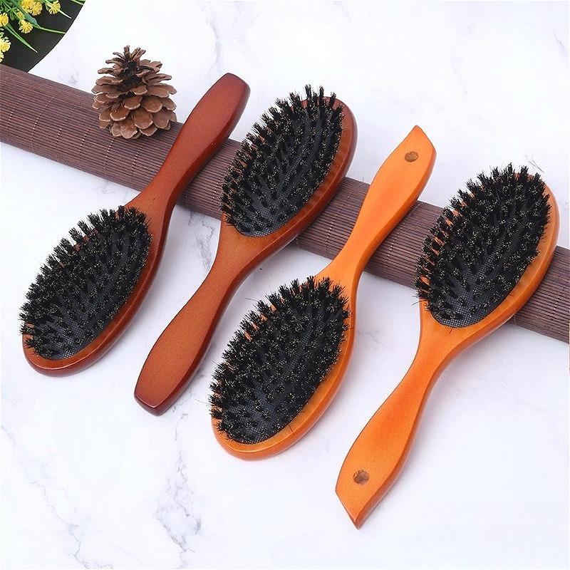 Natural Boar Bristle Detangling Hair Brush Women Wooden Wet Curly Hair Comb Anti-static Scalp Massage Brush Barber Styling Tools