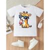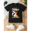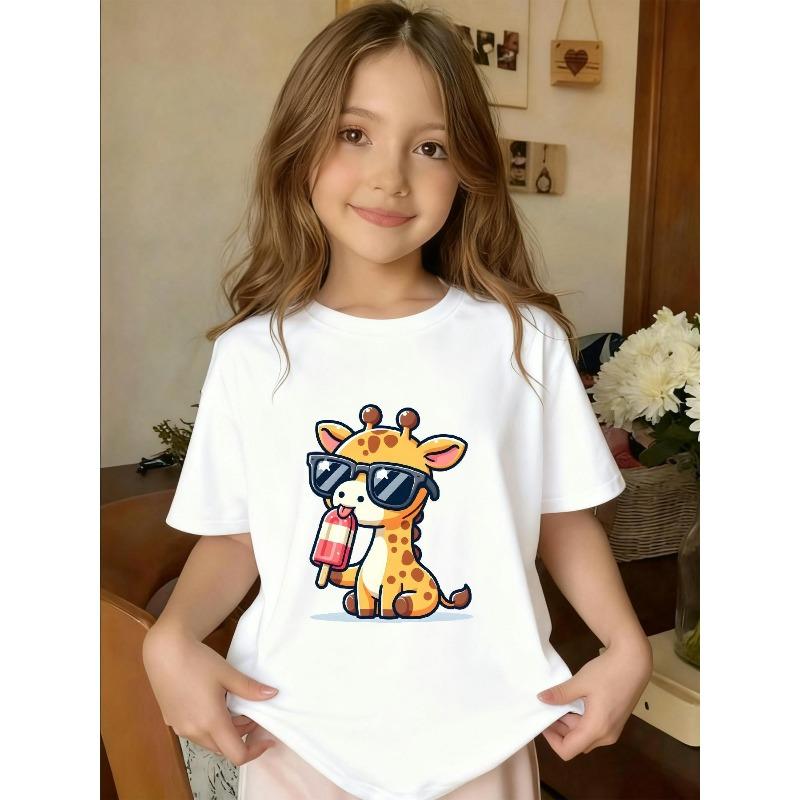 European Sizes Adorable Cartoon Giraffe Design with Glasses, Enjoying a Popsicle. A Short-Sleeved T-Shirt Ideal for Casual Summer Outings