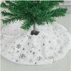 New Christmas Tree Skirt White Snowflakes Plush Xmas Tree Skirts Base Mat Cover Home Decoration Carpet Xmas New Year Decor Gifts