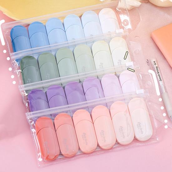 The compact elliptical design fits easily into pencil cases, school bags, or pockets for convenient portability. With a smooth tape-out mechanism, the tape resists breaking or wrinkling and adheres flatly to paper. The non-slip outer shell ensures comfortable, labor-saving operation suitable for all users. Perfect for classrooms, exams, and self-study sessions.