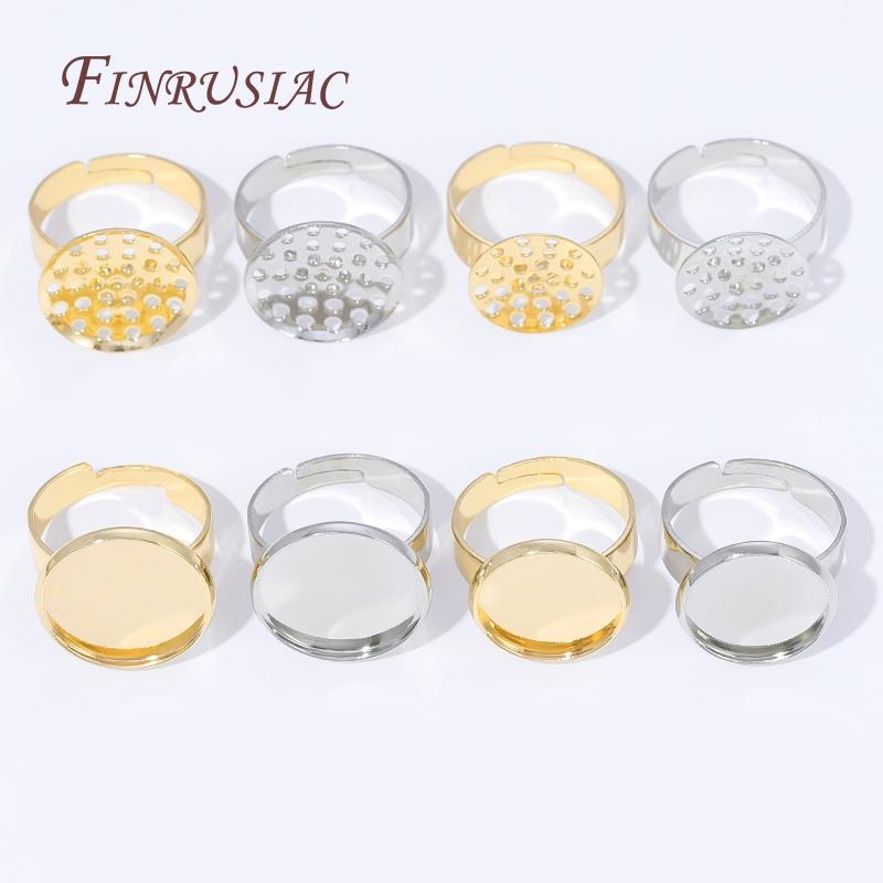 2/4/6pcs Adjustable 14K Gold Plated Open Ring Settings Blank Base Bezel Cabochons Rings For Jewelry Making DIY Finger Ring Blank