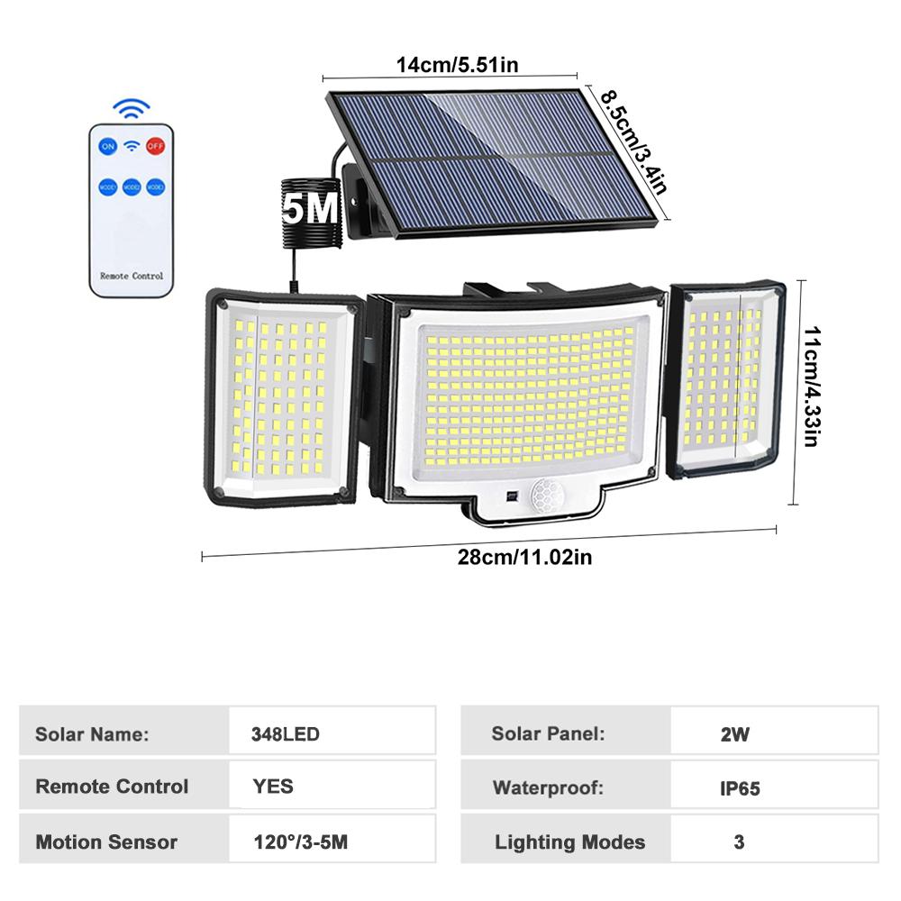 Solar Security Light Outdoor 3 Heads 366LED Motion Sensor Solar Flood Light IP65 Waterproof 3 Modes Lighting for Garage Garden