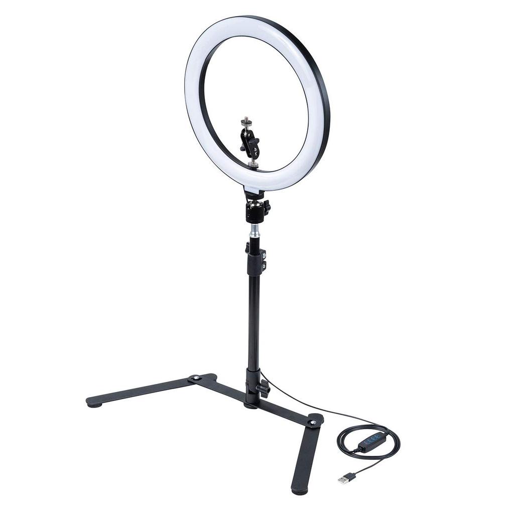 This LED ring light stand for webcams and smartphones allows you to take overhead shots. In addition to overhead shots, you can also use the light on its own by tilting the support pole 90 degrees, making it easy to use as a supplementary light for photography. It's perfect for sharing web conference materials, taking selfies, stills, capturing work, cooking, illustrations, and more. It brightly illuminates your facial expressions and hands during web conferences and video conferences like Zoom and Skype.