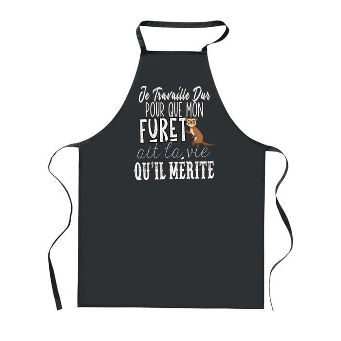 Tablier de cuisine - PLANETEE - Furet Travailler Dur - Noir - 90x60 cm - Imprimé en France