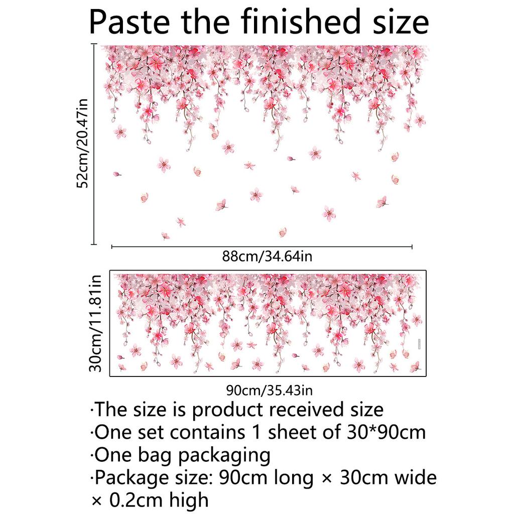 1pc Pink Flower Vine Cherry Blossom Wall Sticker For Living Room Bedroom Home Decor