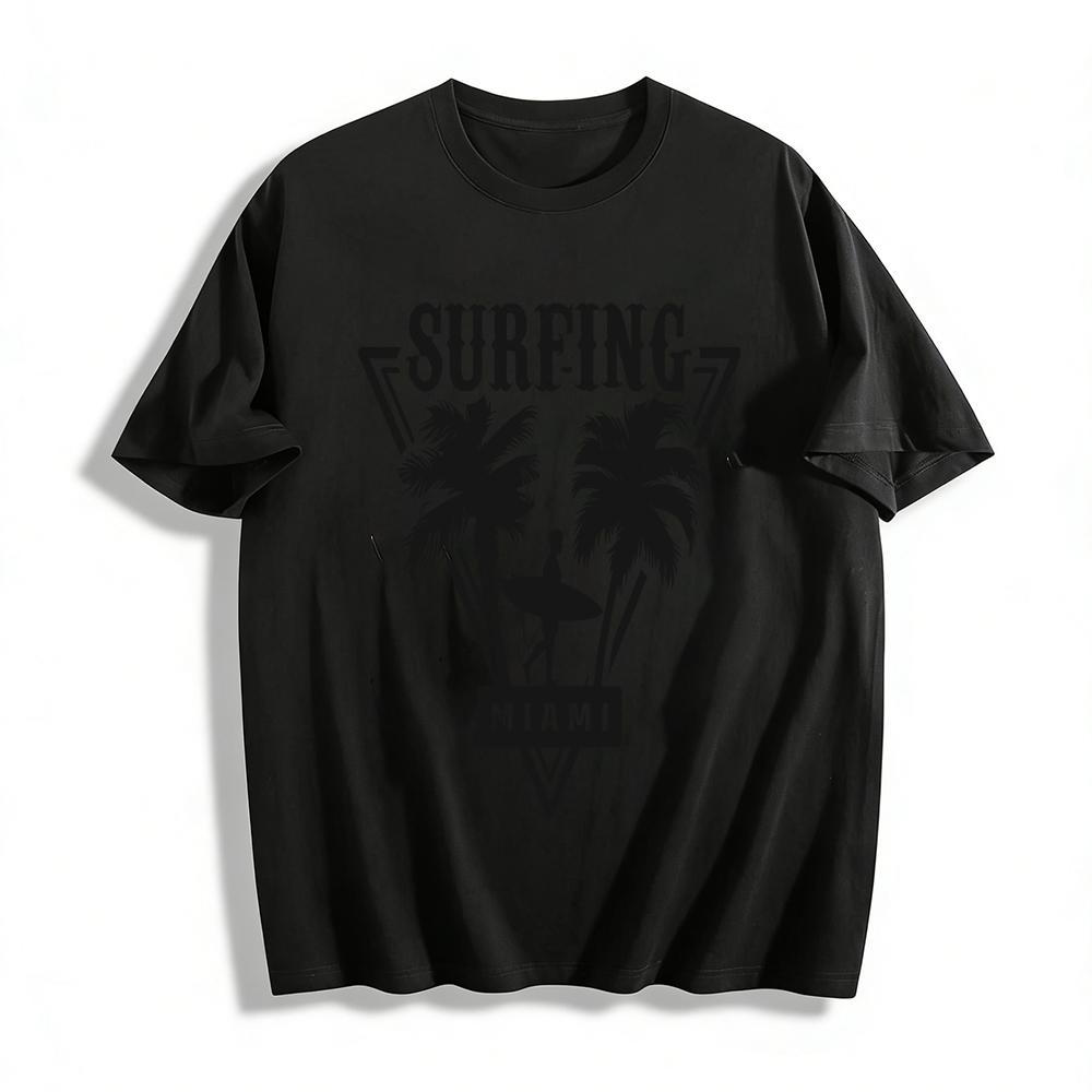 Vintage Miami Surfing Palm Tree Graphic Casual T-Shirt Pure Cotton T-shirt