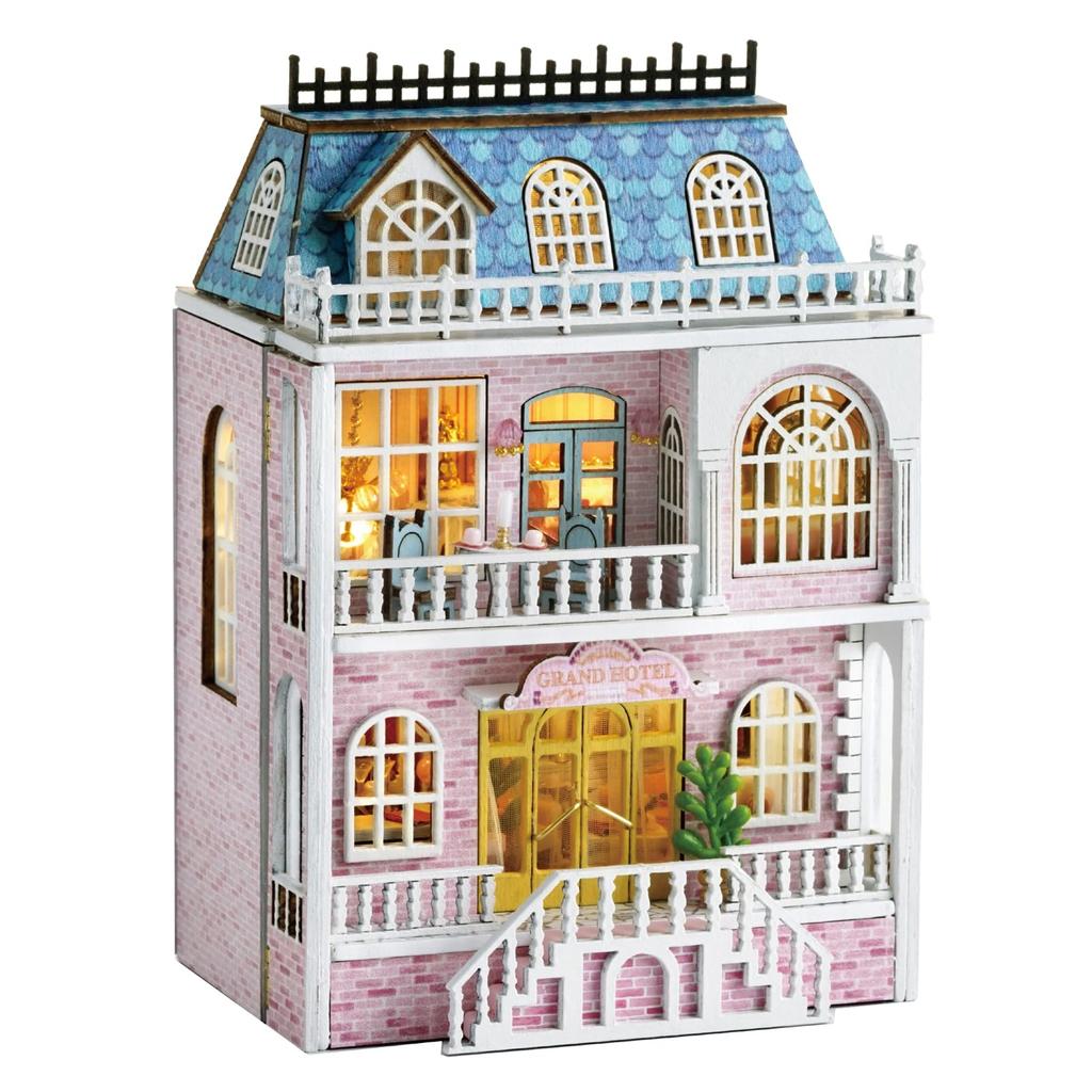 Spilay Dollhouse DIY Miniature Wooden Furniture Kit, Mini Handmade Dollhouse with LED Lights, 1:24 Scale Creative Woodworking Craft Toy (D-018) -