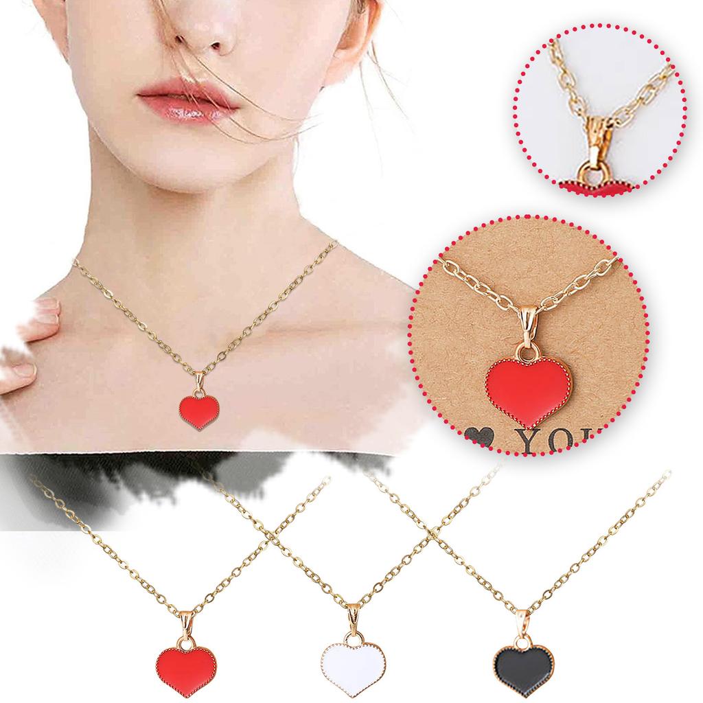 Card Necklace Color Glazed Love Peach Heart Pendant Alloy Clavicle Chain