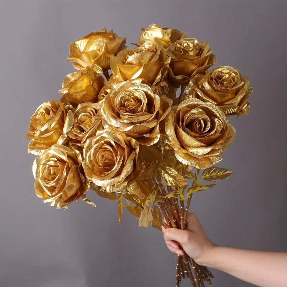 1pc Silk Rose Simulated Rose Bouquet DIY Floral Materials Realistic Artificial Flowers Gold Soft Wedding Bouquet
