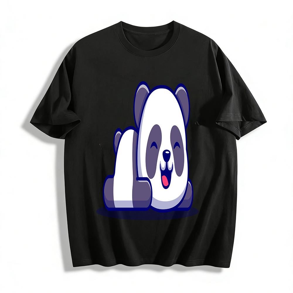 Cute Lying Panda Print Casual T-Shirt Unisex Versatile Crewneck Top Pure Cotton T-shirt
