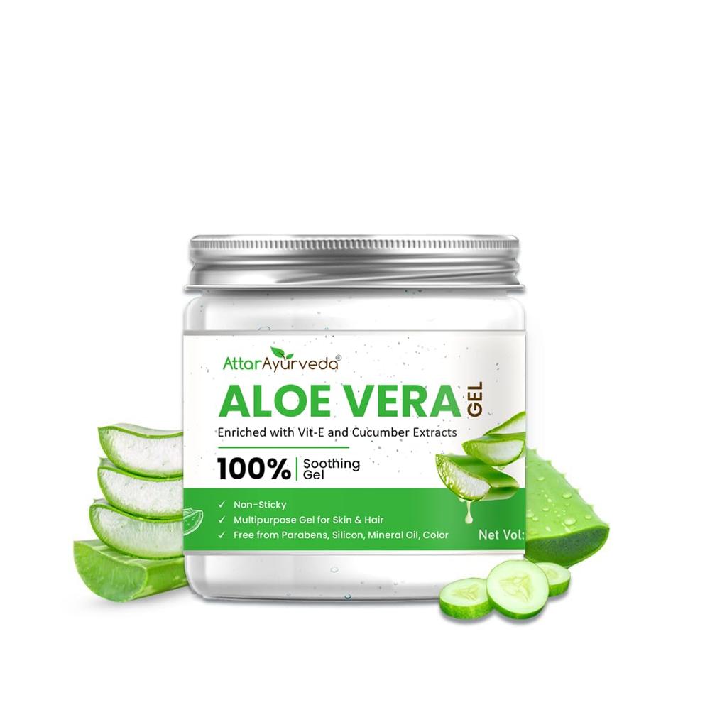 Attar Ayurveda Natural Aloe Vera Gel For Face Skin Hair 200 Ml With Vitamin E & Cucumber Extract Non Sticky Paraben Free