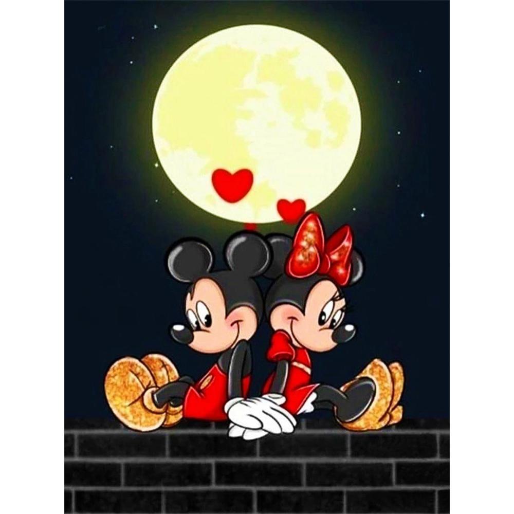 Disney Diamond Painting 5D Mickey and Minnie Moonlit Romantic Illustration Cartoon Movie Cross Stitch Embroidery Handmade Gift Home Decoration