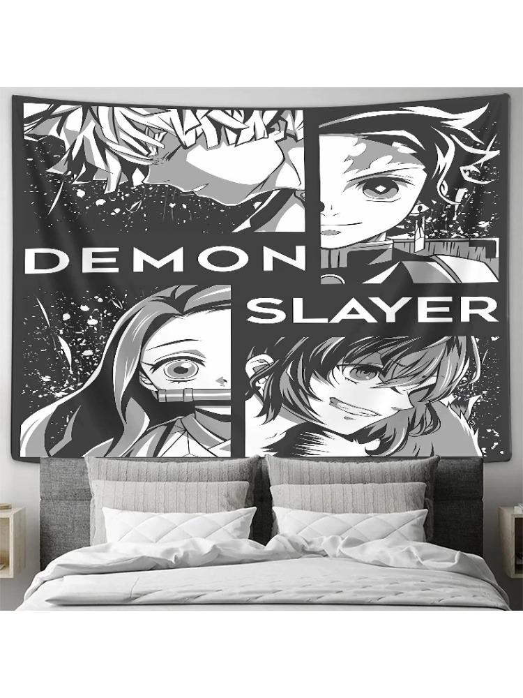 Monochrome Manga Style Decorative Wall Hanging Japanese Anime Theme Decor Tapestry