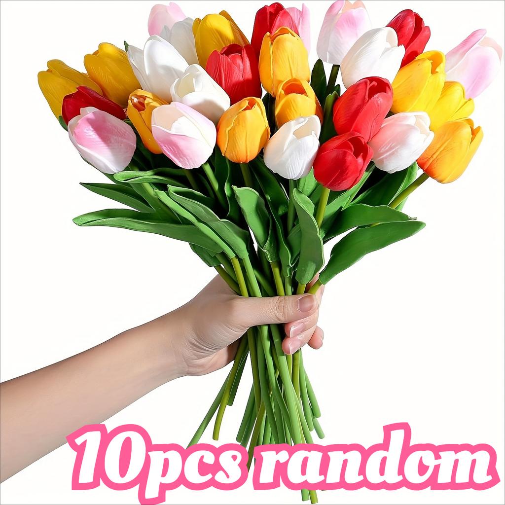 10Pcs Spring Wedding & Mother's Day Tulips, Multicolor PU Stem for Centerpiece, Home Table Decor, Realistic Artificial Flowers