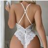 New European and American Plus-size Romantic Lingerie, See-through Sexy Lace Open-crotch Backless Halter Bow One-piece Lingerie