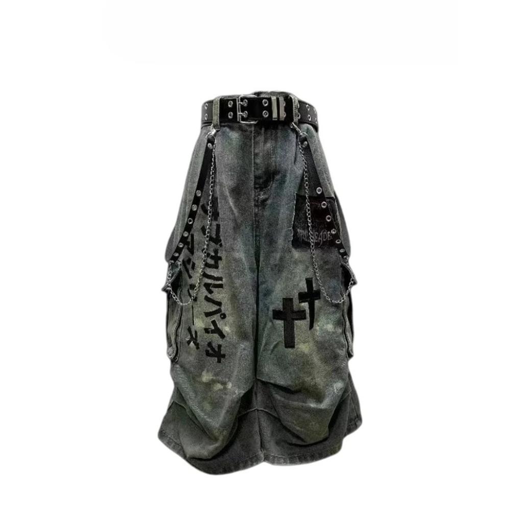 STREETRICH Summer Women Goblin Core Cross Denim Jorts Shorts Y2k Calf-Length Jean Pants Trashy Y2K Abi Japanese Cyber Punk Grunge Unisex