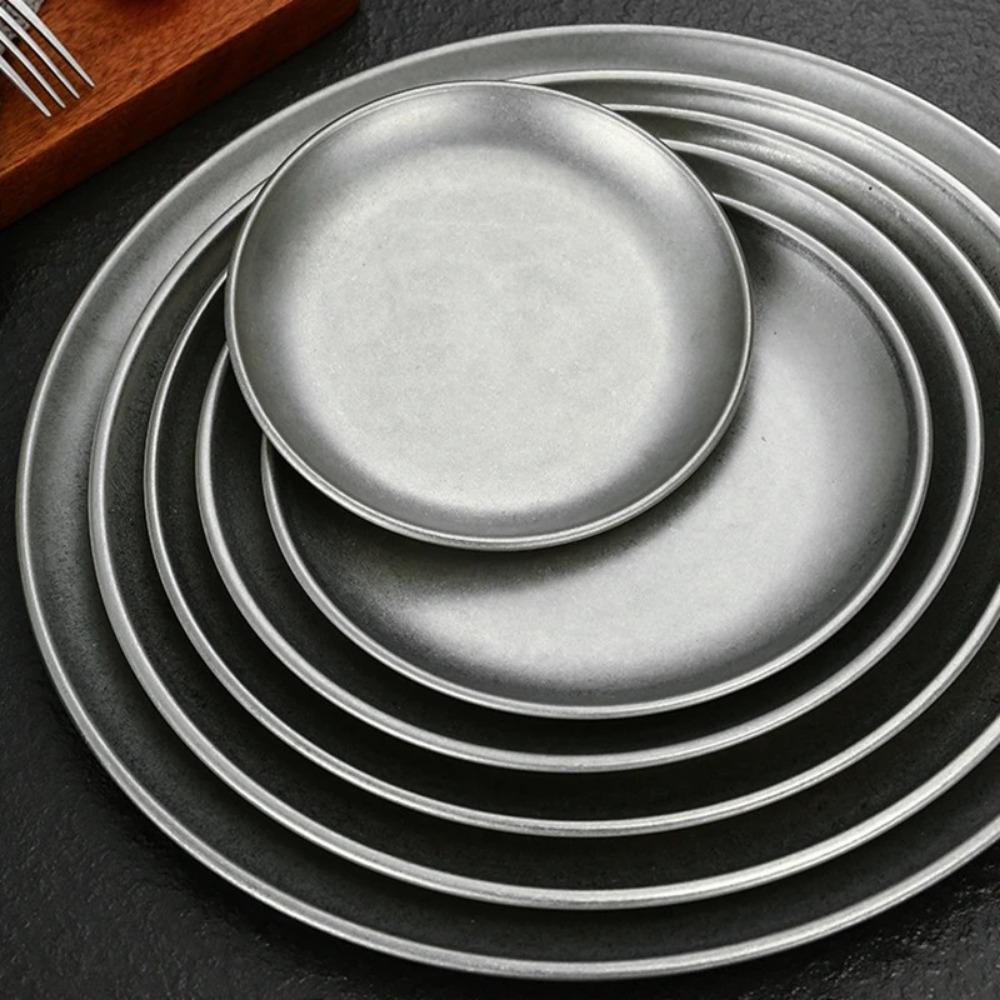 Creative Large Dinner Plate Stackable Round Main Course Plate Stainless Steel Grilled Meat Salads Pasta Tray Kitchen Tableware