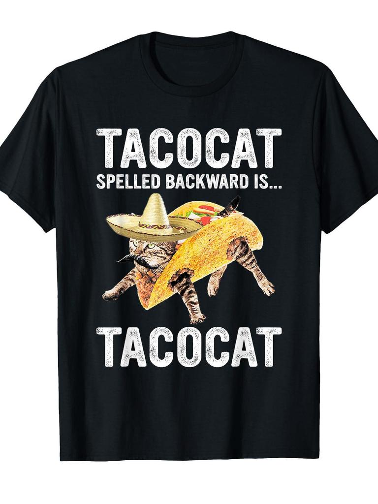 This Tacocat Read backwardsFun Crew Neck Tshirt for Taco Lovers and Cat Enthusiasts Pure Cotton Couple Streetwear Top