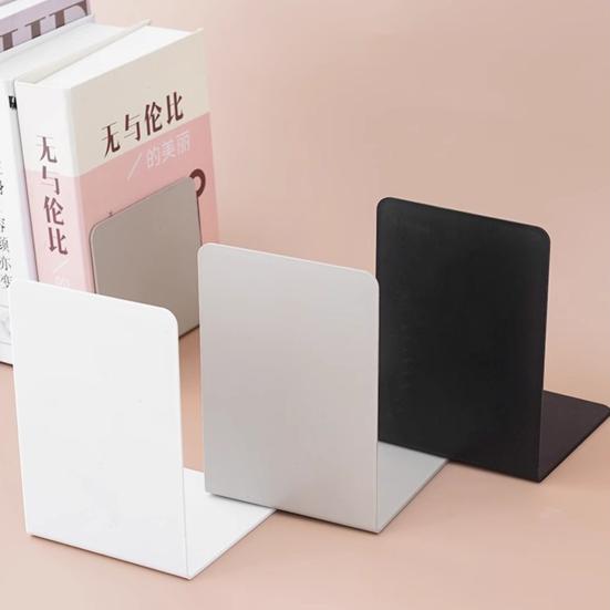 2Pcs Metal Bookends Solid Color Sturdy Metal Construction Anti-Slip Pad Design Desktop