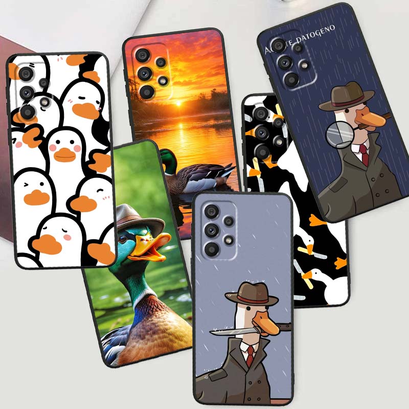 Cartoon Anime Duck Pattern For Samsung A73 A72 A71 A55 A54 A53 A52 A51 A13 A22 A16 A15 A12 A14 A26 A07 5G Black Phone Case