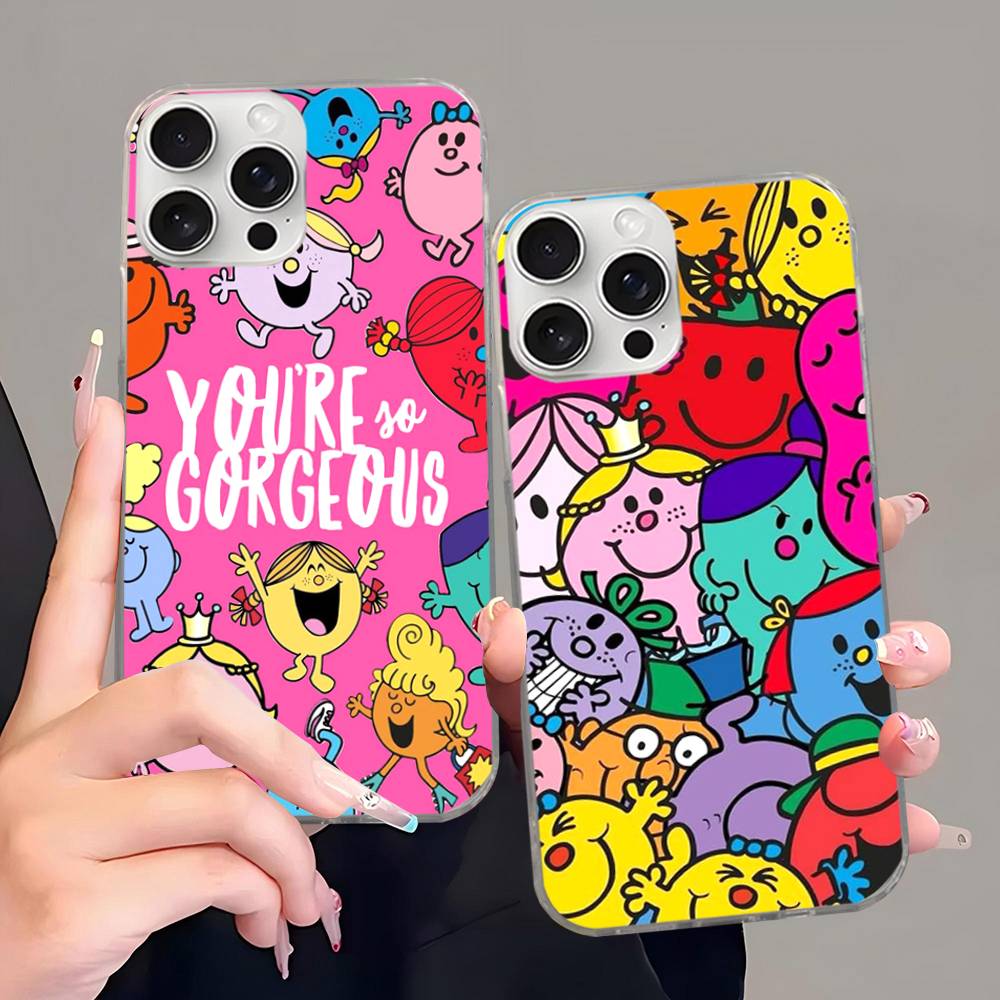 Gifts Mr Men And Little MisS Silver Gradient Pleated Water Ripple Phone Case For IPhone 17 16 15 14 13 12 11 Pro Max