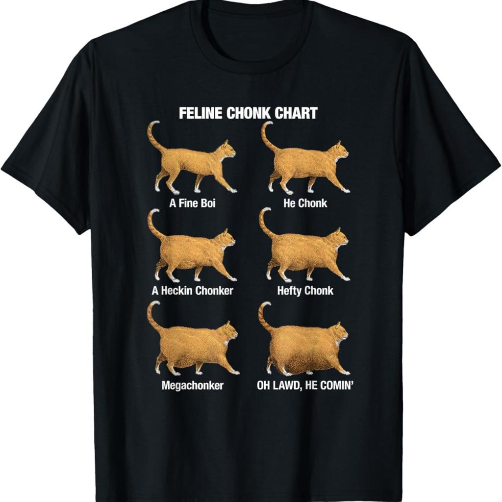 Feline Chonk Cat Chart, Funny Cat Meme, Oh Lawd He Comin T-Shirt