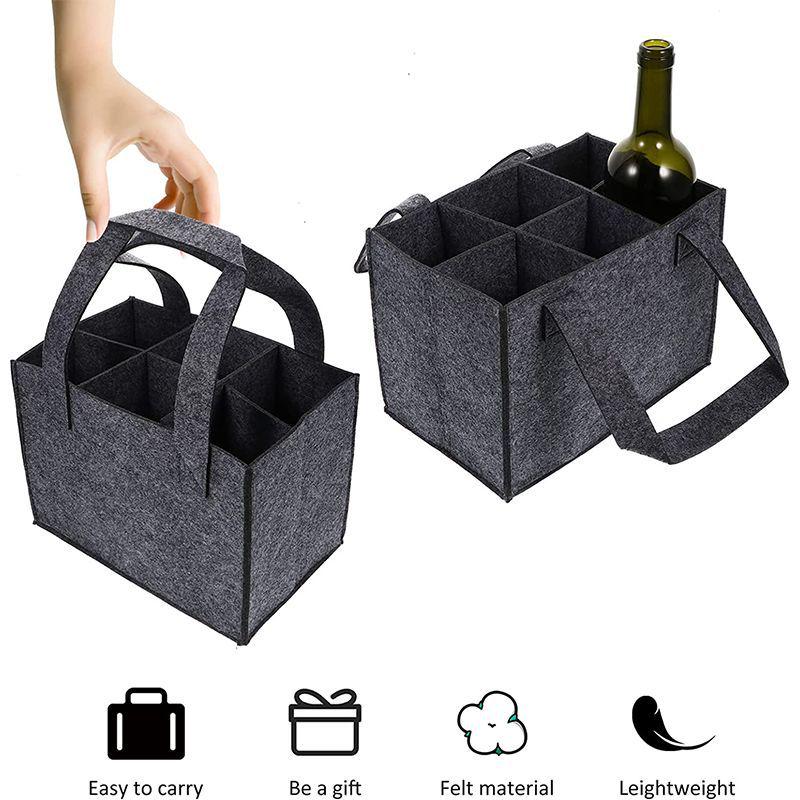 Red Wine Tote Bag - Handheld Non-Woven Felt, Holds 6 Bottles