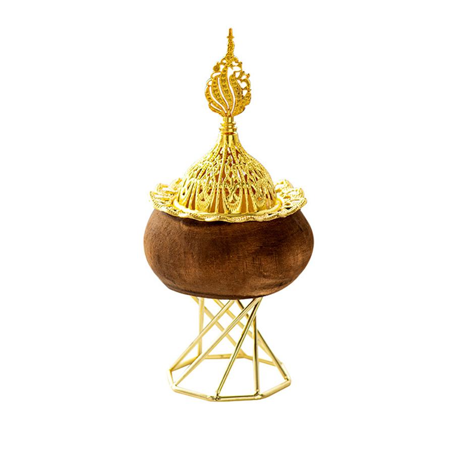 Retro Round Wood Octagonal Golden Metal Temple Table Decoration Aromatherapy Furnace Middle Eastern Arab Festival Incense Burner