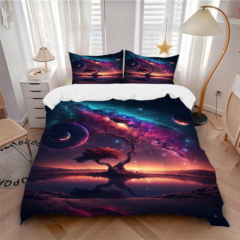3pcs Fantasy Galaxy Tree Bedding Set - Includes One Quilt Cover and Two Pillowcases (No Core) - Home Decor, Festival Gift, Polyester Fabric,