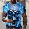 Men's Halloween Sports T-shirt 3D Neutral Skull Print Round Neck Short Sleeved Casual, Comfortable and Fashionable Top