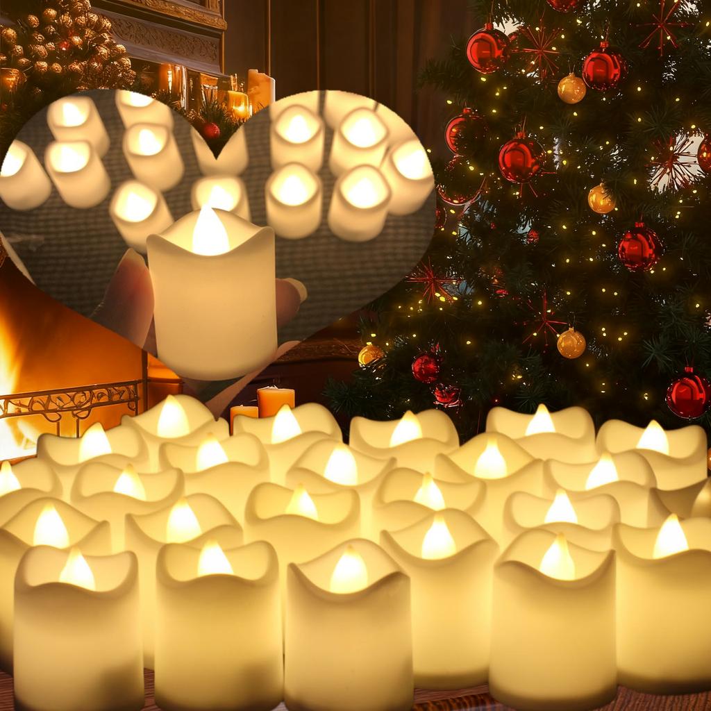 24PC Pack Flameless LED Candles Flicker/Non-Flicker Battery Operated Tea Lights Warm White for Wedding Table Christmas Decor