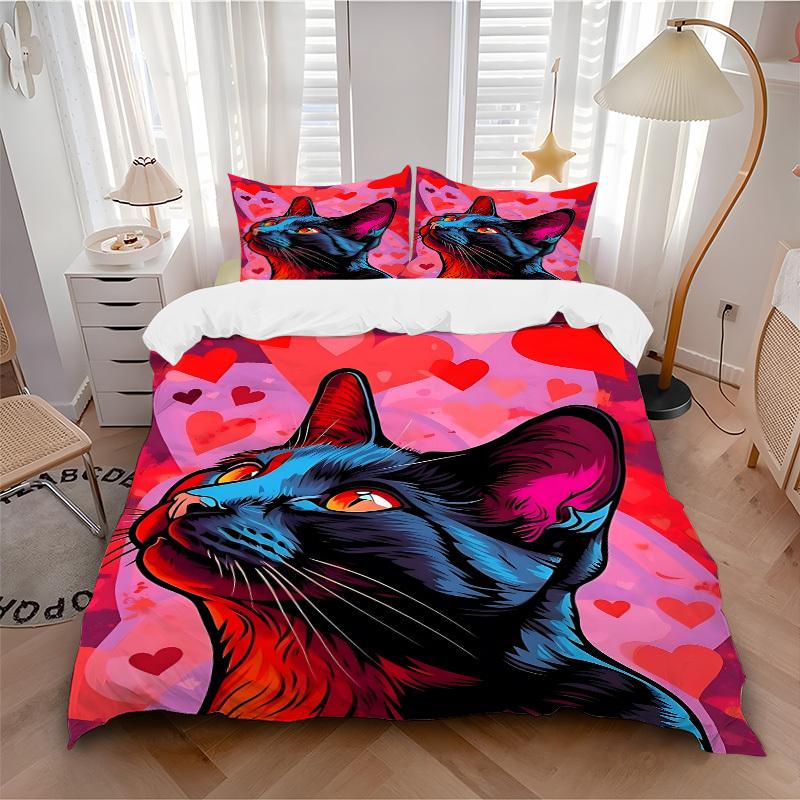 3pcs Cat Art Print Duvet Cover Set, Cover For Bedroom Guest Room (1 Duvet Cover + 2 Pillowcase, Without Quilt), Yy250922121