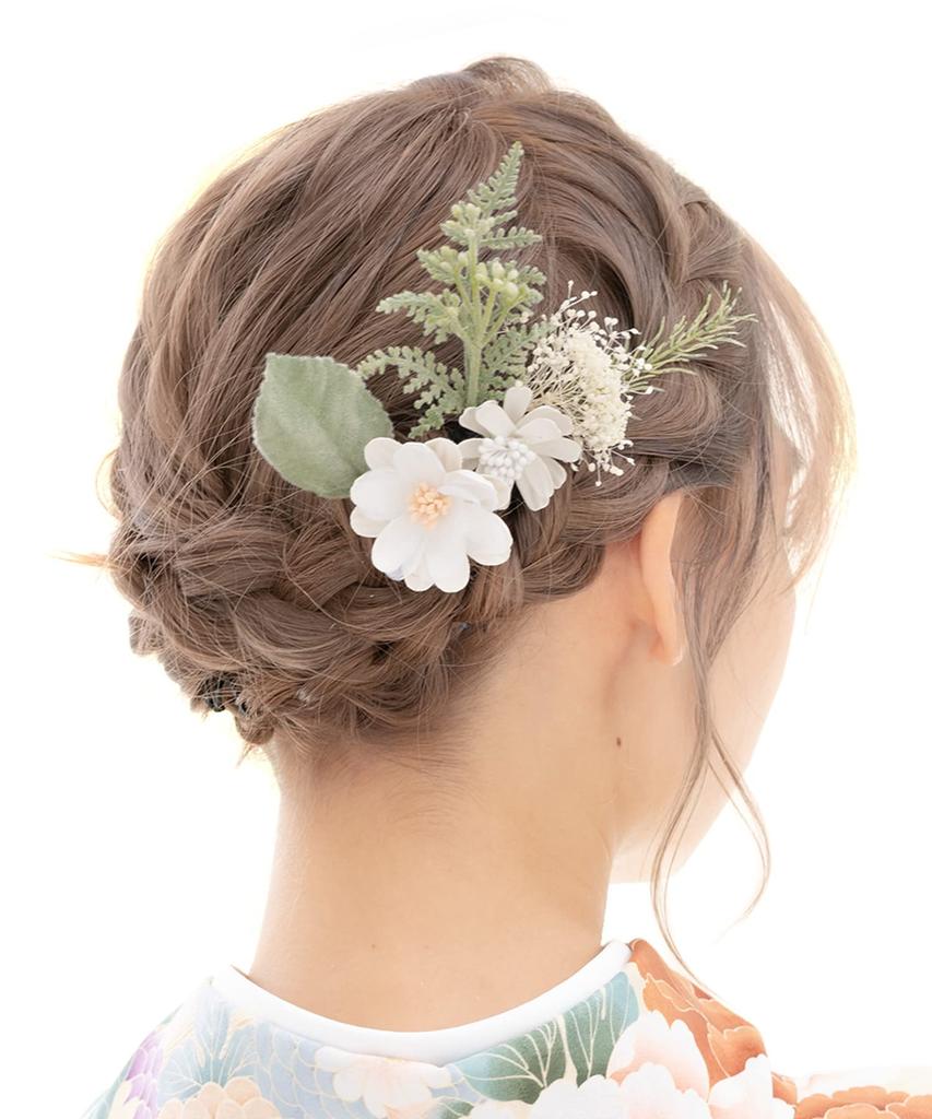 [SOUBIEN] Soubien Coming-of-Age Ceremony Hair Ornament Set, Dried Flower Style Artificial Flowers, 6 Pieces, White and Green Flowers (sbn-kaz10020)